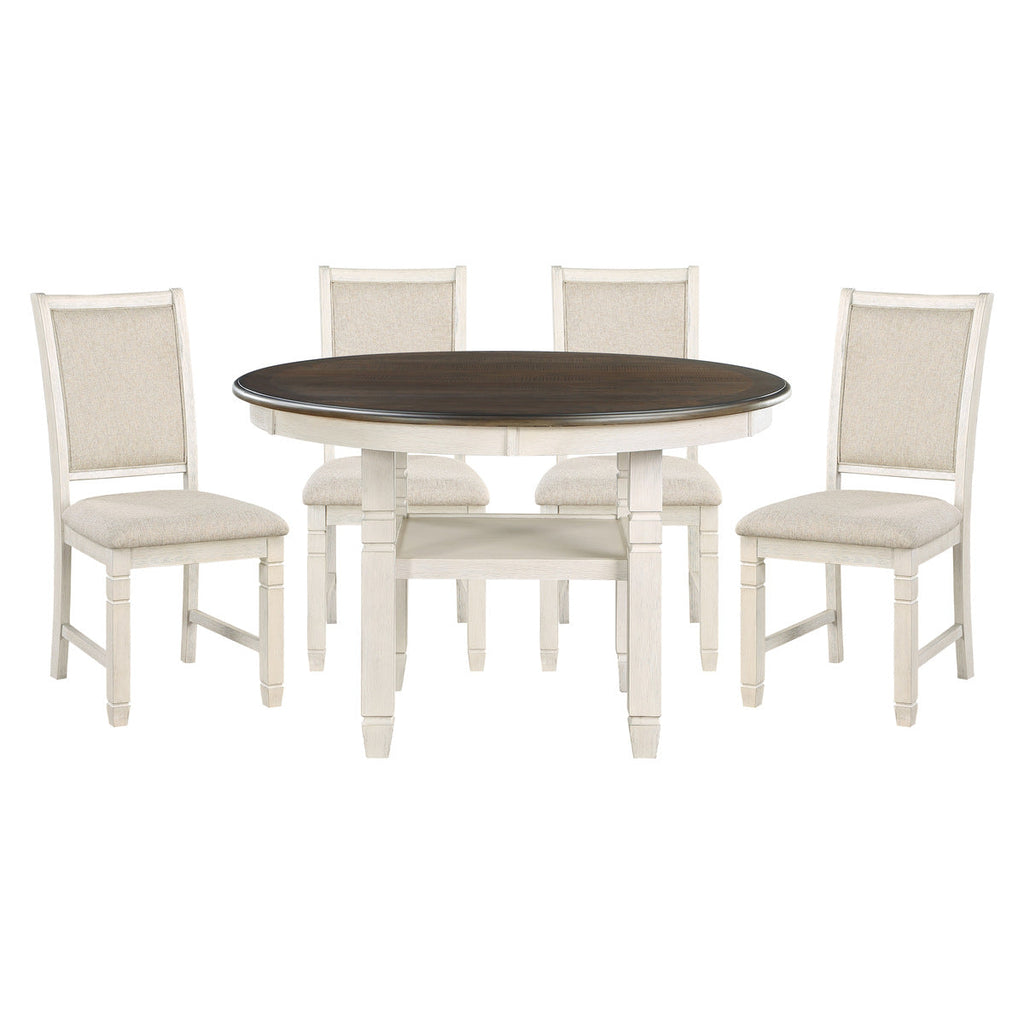 The transitional style of the Asher Collection creates a versatile platform to inspire your casual dining room décor. The round counter height table’s support base features a display shelf that allows for quick and open access to your tabletop accessories. The brown and black finish over acacia veneer serves to highlight the wood’s grain while allowing for maximum versatility in decorative accenting. The coordinating wood-framed counter height chairs feature beige fabric seats for complementing contrast.