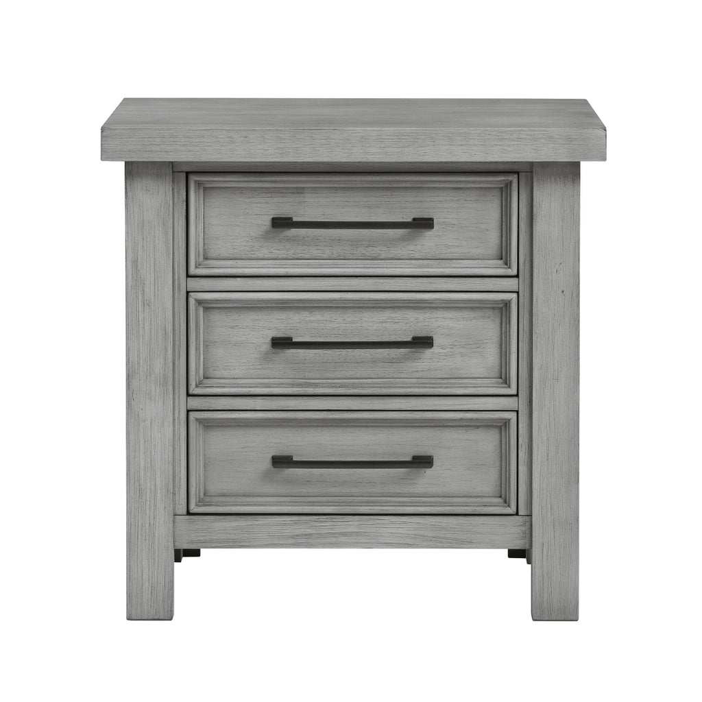 The transitional framing of the Logandale Collection allows for versatile placement within a number of classic bedroom decors, making a perfect choice for your home. An antique gray finish is utilized over mango veneer for subtle highlighting of its distinct grain. Dark finished metal knob and pull hardware front each drawer of the nightstand, creating a complementing accent to the collection.