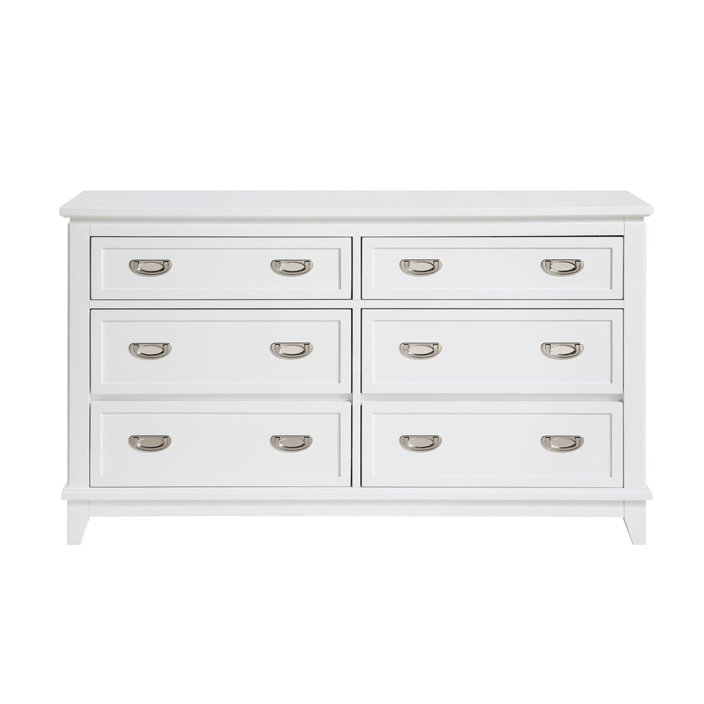 Add stylish and ample storage to your bedroom with this navy blue 6-drawer dresser. Crafted from wood and engineered wood with a sleek navy blue finish, this dresser features six dovetail drawers with smooth ball-bearing glides for easy access to your clothing and belongings. Polished nickel-tone flush ring pulls add a touch of sophistication, and with no assembly required, this dresser is ready to enhance your bedroom décor right out of the box.