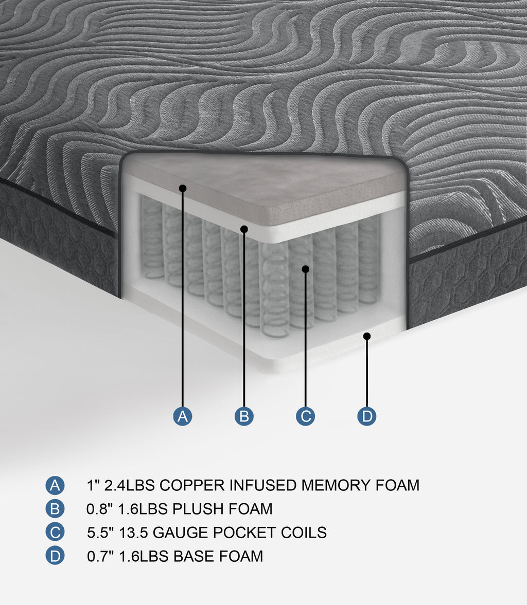 Taurus 8" Copper-infused Memory Foam Hybrid Mattress Display Cube
