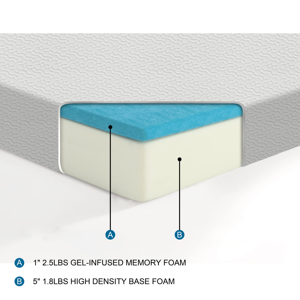 The Vega Collection presents our line of gel-infused memory foam mattresses that form to your body, creating a customized sleep experience that is as unique as you are. The fabric covering the mattress contains Tencel, a breathable material that allows for a comfortable night’s sleep no matter the season. Our 6-inch mattress features double layer construction that consists of: 1-inch gel-infused memory foam and 5-inches of high-density base foam. The Vega Collection’s selection creates the perfect fit for your personal sleep experience.