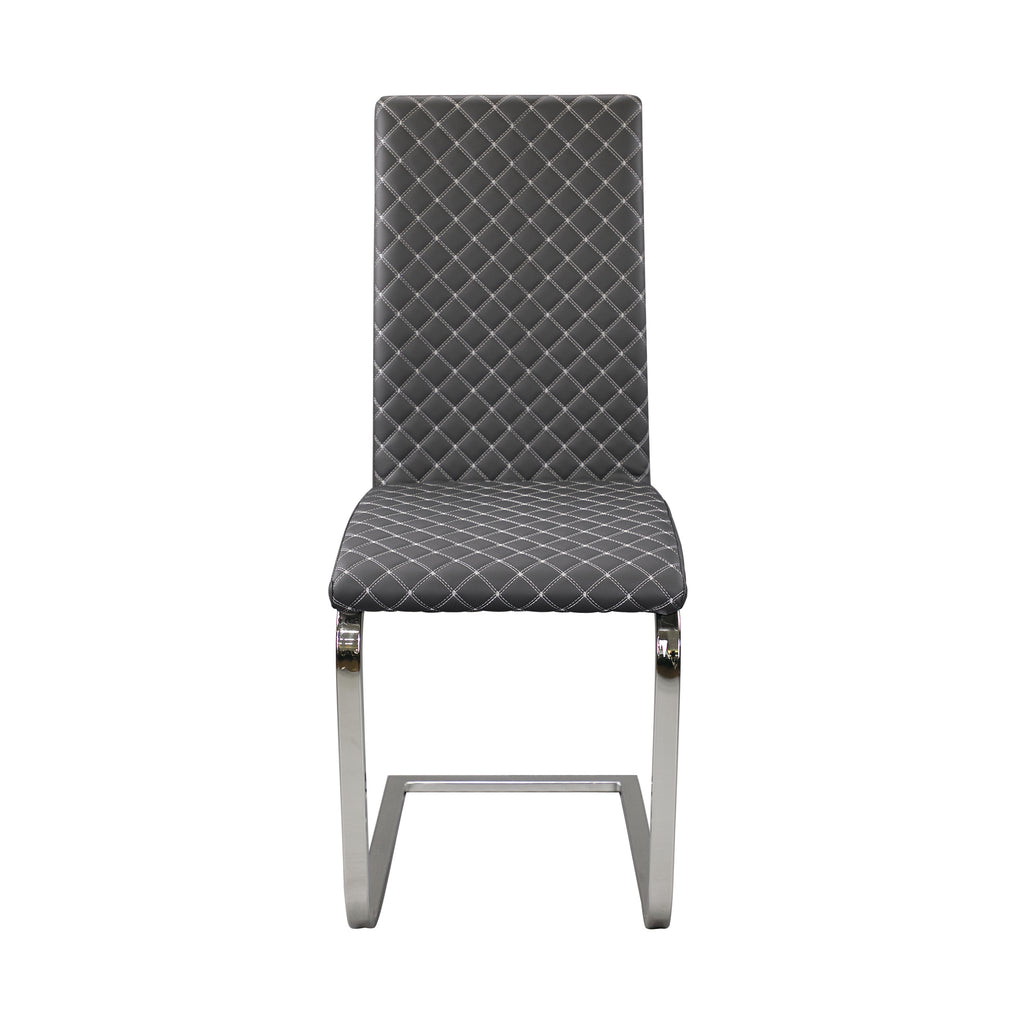Sleek contemporary styling provides the platform from which you will create your casual dining space in the Yannis Collection. The continuous base of the chair rises to support a gray faux leather seat with diamond pattern stitching, providing additional visual interest.