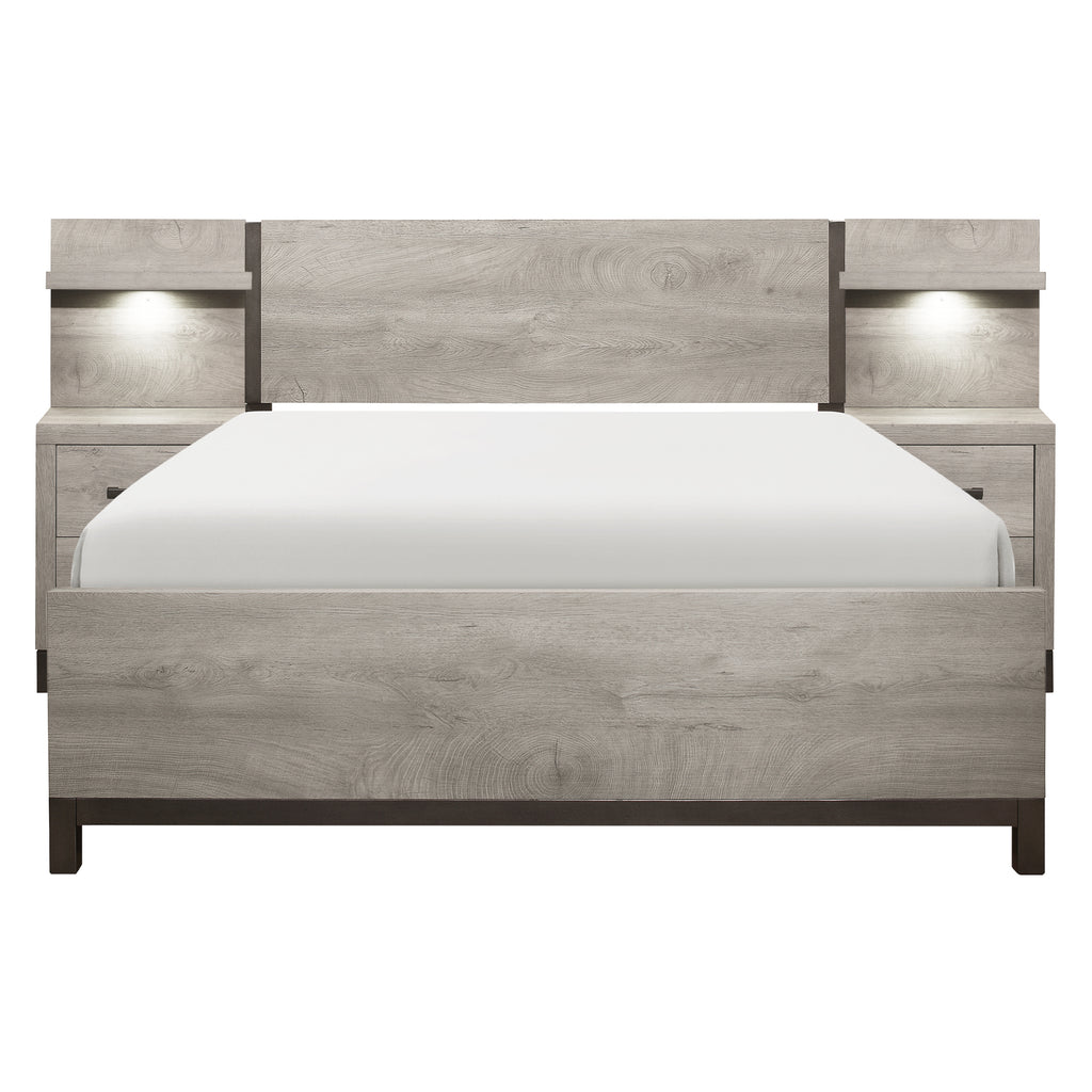 - Bed set includes Eastern King Bed Bed, 2 nightstand with wall panels